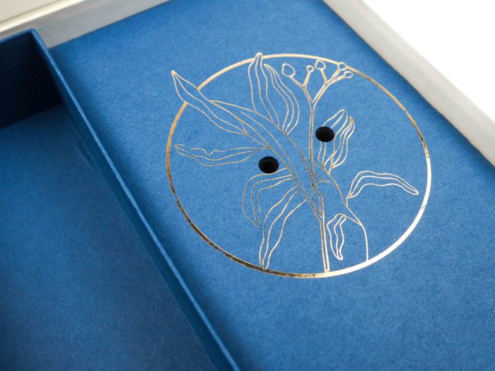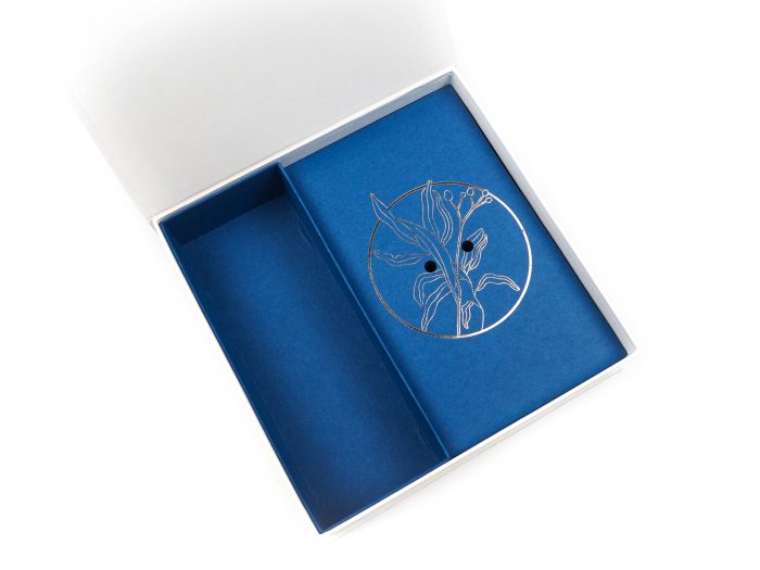 • Vnitřek: potahovaná vložka na sortiment s výřezy na manžetové knoflíčky + ražba