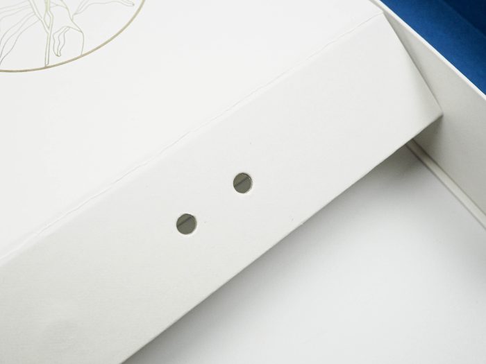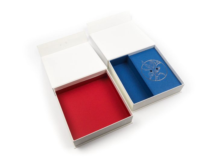 Jeden druh krabiček byl vyroben pro pány, kam byla uložena kravata s manžetovými knoflíčky a druhá varianta krabiček byla vyrobena pro dámy jako balení na dámský šátek. Aby byly krabičky lehce rozeznatelné v zavřeném stavu, dámské provedení krabiček bylo připraveno na zavírání se stuhou a pánské zavírání krabiček s magnetem.